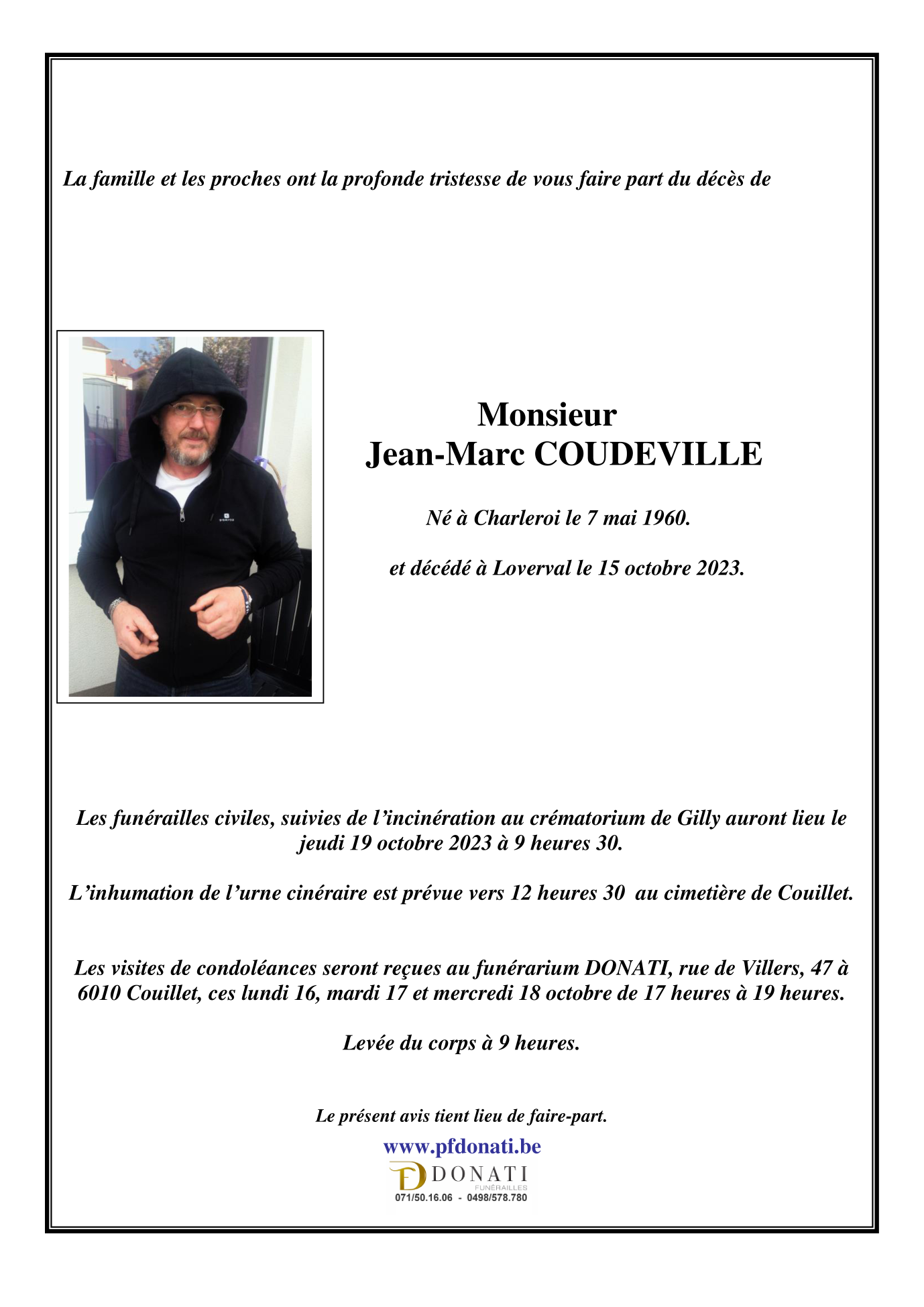 Décédé à Loverval (6280) le dimanche 15 octobre 2023 à l'âge de 63 ans