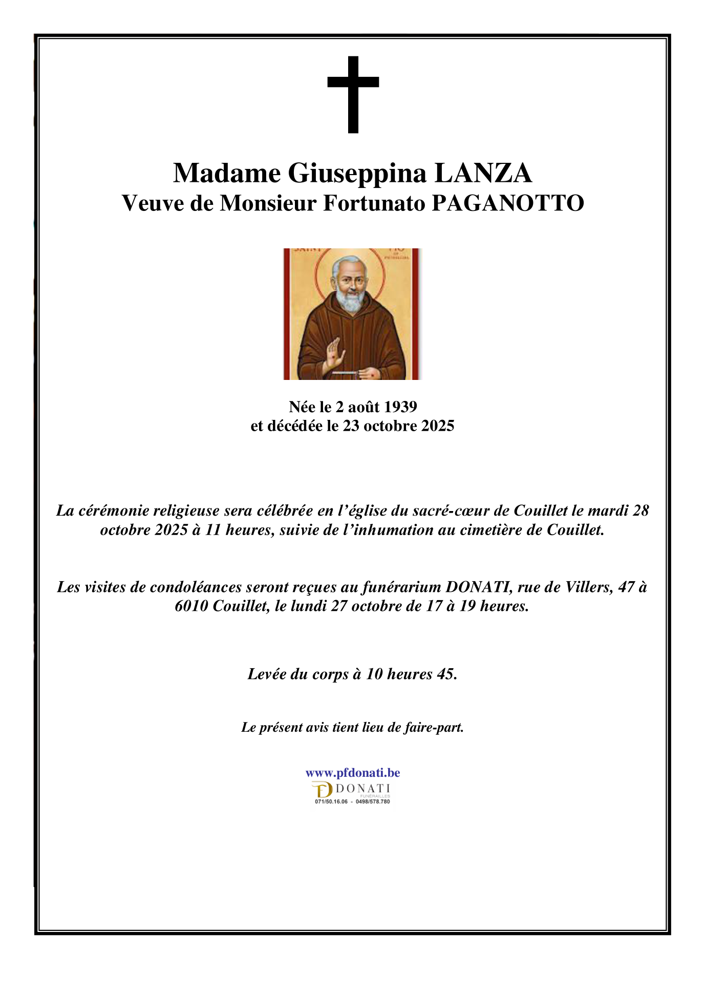 Décédée à Gilly (6060) le jeudi 23 octobre 2025 à l'âge de 86 ans
