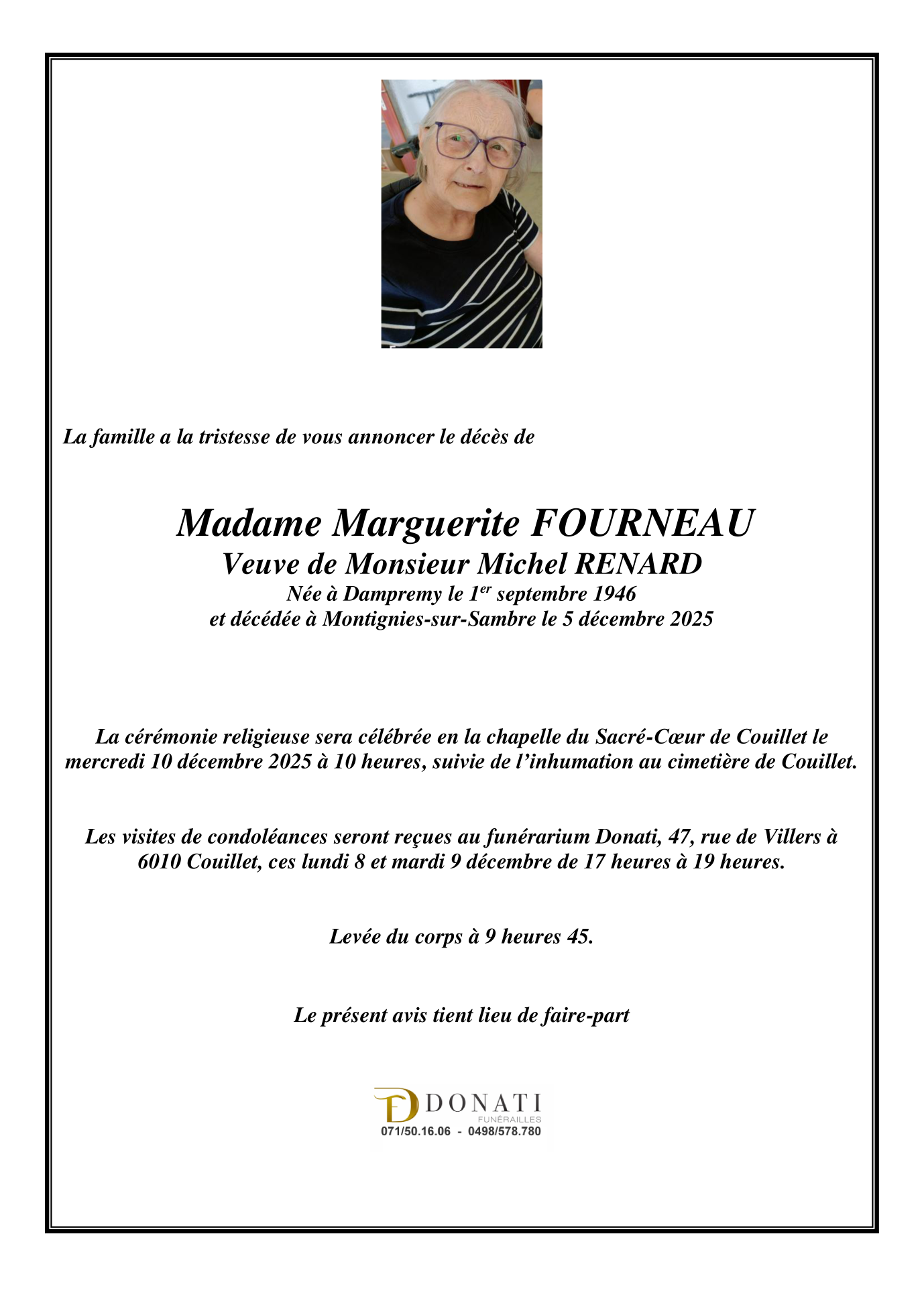 Décédée à Montignies-sur-Sambre (6061) le vendredi 5 décembre 2025 à l'âge de 79 ans
