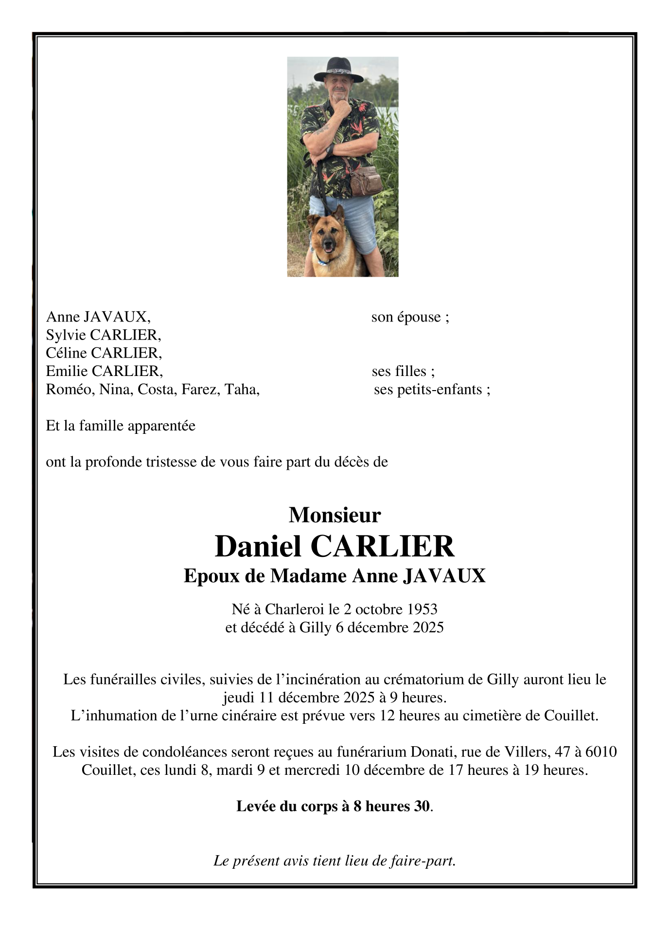 Décédé à Gilly (6060) le samedi 6 décembre 2025 à l'âge de 72 ans