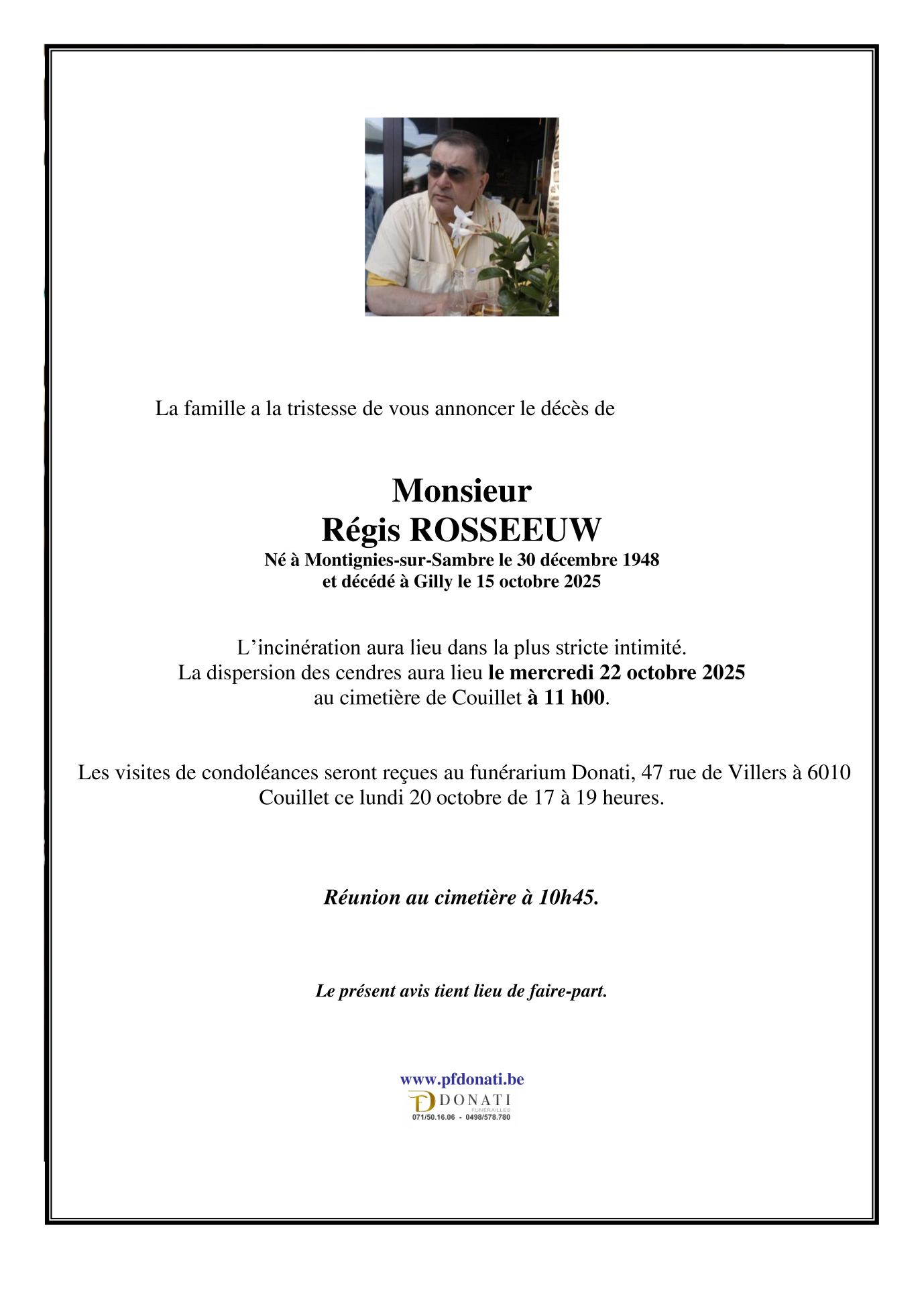 Décédé à Gilly (6060) le mercredi 15 octobre 2025 à l'âge de 76 ans